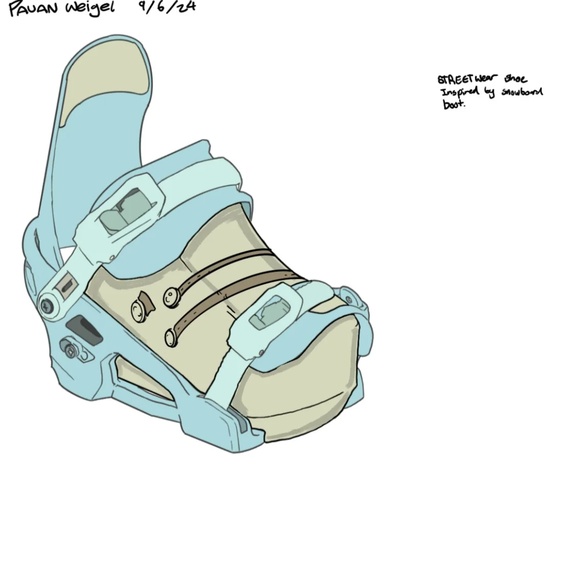 This is a sneaker I designed intended for streetwear, inspired by snowboard bindings.